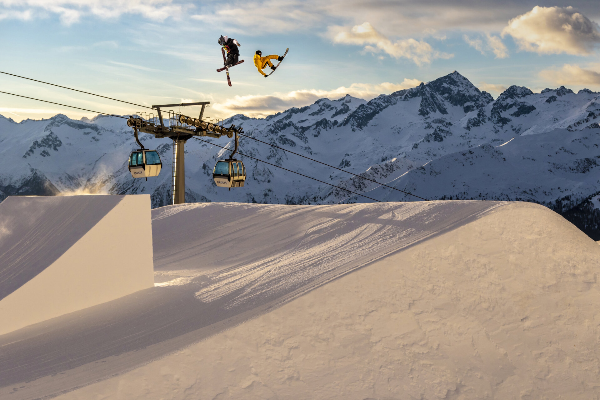 The snowpark is accessible via the Grostè gondola and is served by the six-seater Grostè Express chairlift.