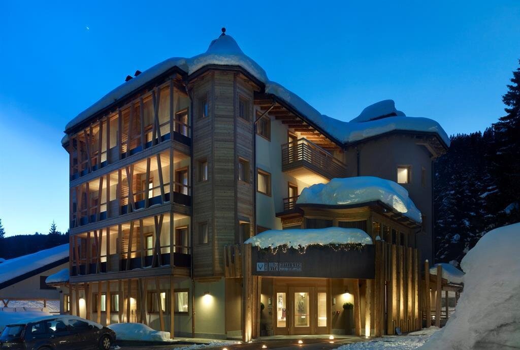 Appena arrivati al "DV Chalet Boutique Hotel & Spa", si entra a far parte di una storia speciale, di un vissuto che sa di calda ospitalità, attenzione ai minimi dettagli, e dove è subito chiaro che al centro di tutto c'è l'ospite. La reception è piuttosto inusuale e sfugge volutamente agli stereotipi d'albergo, il lounge "intercetta" il grande camino creando un'accogliente panca dove accoccolarsi per chiacchierare, leggere un libro, sorseggiare semplicemente un té. Il ristorante stellato "Dolomieu"...